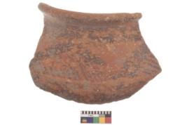 | Description / विवरण | Specimen of black on red ware with decorative geometric Latticed loops set in two horizontal bands painting. |