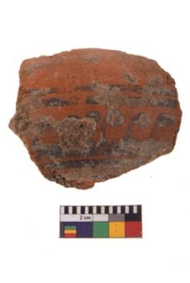 | Description / विवरण | Specimen of fine red ware; it shows geometric pattern painting on its exterior. Type Black on Red Ware . |
