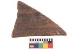 | Description / विवरण | Specimen of potsherd with black decorative geometric painting. Type Black on Red Ware . |