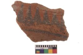 | Description / विवरण | Specimen of black on red ware with black decorative Joint triangles geometric painting. |