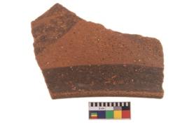| Description / विवरण | Specimen of potsherd with black decorative geometric painting. Type Black on Red Ware . |