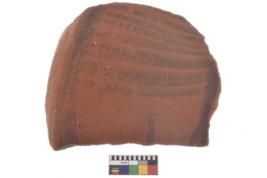 | Description / विवरण | Specimen of black on red ware with decorative geometric Outcurved lines painting. |