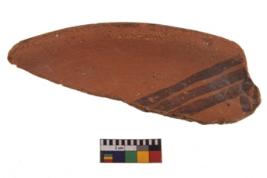 | Description / विवरण | Specimen of fine red ware; it shows geometric pattern painting on its exterior. Type Black on Red Ware . |