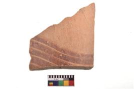 | Description / विवरण | Specimen of potsherd with decorative geometric painting. Type Black on Red Ware . |