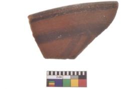 | Description / विवरण | Specimen of black on red ware with decorative geometric Two horizontal and two ourcurved lines painting. |