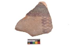 | Description / विवरण | Specimen of potsherd with decorative geometric painting. Type Black on Red Ware . |
