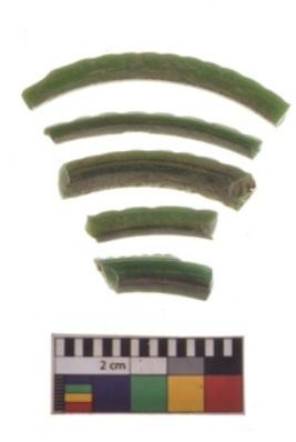 | Description / विवरण | Specimen n-5 having glossy green surface. They are circular in cross-section. |