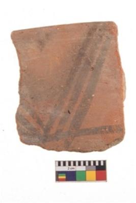 | Description / विवरण | Specimen of potsherd with black decorative geometric painting. Type Black on Red Ware . |
