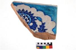 | Description / विवरण | A fragment of a Chinese ware .It is bluish in colour with blue flower painting on it. |