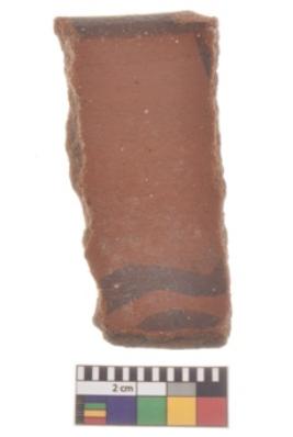 | Description / विवरण | Specimen of black on red ware with decorative geometric Wave design painting. |