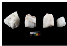 | Description / विवरण | Specimen of cores with weathered cortex and several broad fluted marks. Some of them are irregular in shape, whereas some are tapering at one end. |