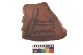 | Description / विवरण | Specimen of black on red ware with decorative geometric Groups of four vertical wave lines painting. |