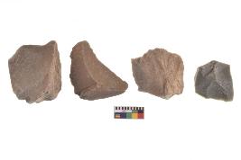 | Description / विवरण | There are n-4 of utilized flake cores. There are multidirectional irregular dominant scar pattern on both dorsal and ventral face of the cores. |