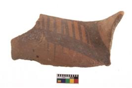 | Description / विवरण | Specimen of potsherd with black decorative geometric painting. Type Black on Red Ware . |