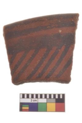 | Description / विवरण | Specimen of black on red ware with decorative geometric Outcurved lines painting. |