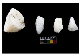 | Description / विवरण | Specimen of cores with weathered cortex and several broad fluted marks. Some of them are irregular in shape, whereas some are tapering at one end. |
