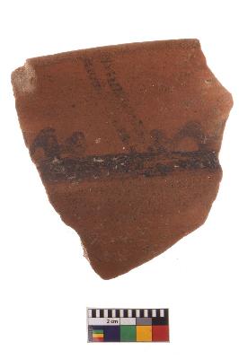 | Description / विवरण | Specimen of potsherd with black decorative geometric painting, Type Black on Red Ware . |