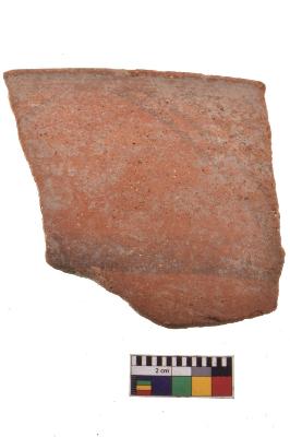 | Description / विवरण | Specimen of black on red ware with decorative geometric Groups of oblique strokes set in horizontal bands on the exterior painting. |