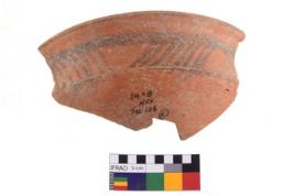 | Description / विवरण | Specimen of potsherd with decorative geometric painting. Type Black on Red ware |