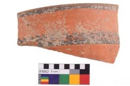| Description / विवरण | Specimen of potsherd with decorative geometric painting. Type Black on Red ware |