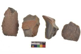 | Description / विवरण | There are n-4 of utilized flake cores. There are multidirectional irregular dominant scar pattern on both dorsal and ventral face of the cores. |