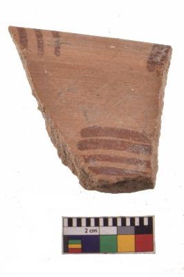 | Description / विवरण | Specimen of red on red ware with decorative geometric Vertical and vorizontal lines painting. |