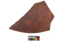 | Description / विवरण | Specimen of potsherd with black decorative geometric Diamond set broad horizontal bands painting, Type Black on Red Ware . |