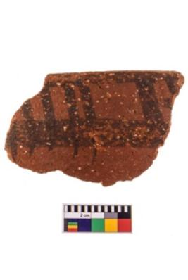 | Description / विवरण | .Specimen of potsherd with black decorative geometric painting . |
