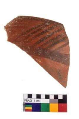 | Description / विवरण | Specimen of potsherd with black decorative geometric painting . |