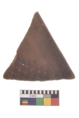 | Description / विवरण | Specimen of black on red ware with decorative geometric A row of latticed diamonds set in horizontal bands but having groups of oblique lines at intervals painting. |