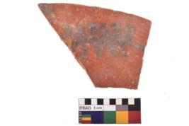 | Description / विवरण | Specimen of potsherd with decorative geometric painting. Type Black on Red Ware . |