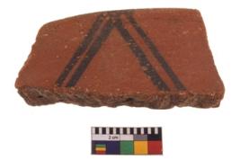 | Description / विवरण | Specimen of fine red ware; it shows geometric pattern painting on its exterior. Type Black on Red Ware . |