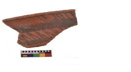 | Description / विवरण | Specimen of black on red ware with decorative geometric A double row of acrhes over a horizontal band painting. |