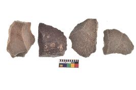| Description / विवरण | There are n-4 of utilized flake cores. There are multidirectional irregular dominant scar pattern on both dorsal and ventral face of the cores. |