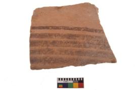 | Description / विवरण | Specimen of fine red ware; it shows geometric pattern painting on its exterior. Type Black on Red Ware . |