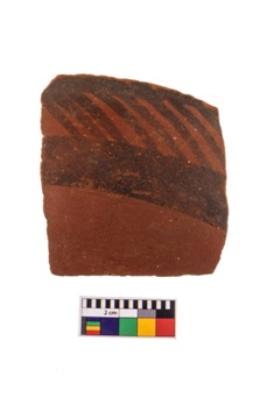 | Description / विवरण | Specimen of potsherd with black decorative geometric painting . |