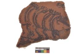 | Description / विवरण | Specimen of black on red ware with decorative geometric Pair of wavy lines with with dots on either side painting. |