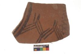 | Description / विवरण | Specimen of black on red ware with black decorative Parallel intersecting criss cross lines geometric painting. |