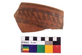 | Description / विवरण | Specimen of potsherd with black decorative geometric painting . |