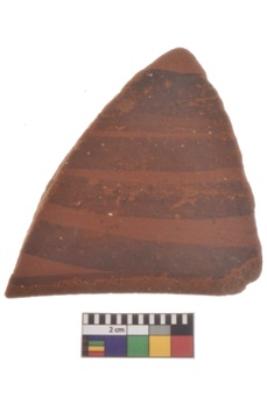 | Description / विवरण | Specimen of black on red ware with decorative geometric Its decorated with two horizontal bands with sets of triple arches painting. |