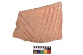 | Description / विवरण | Specimen of potsherd with decorative geometric painting. Type Black on Red Ware . |