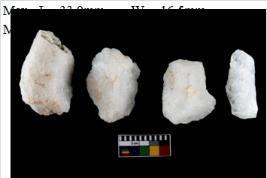 | Description / विवरण | Specimen of cores with weathered cortex and several broad fluted marks. Some of them are irregular in shape, whereas some are tapering at one end. |