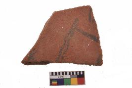 | Description / विवरण | Specimen of black on red ware with decorative geometric Cross zig-zag lines painting. |