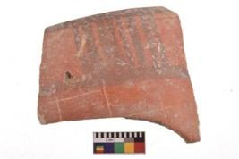 | Description / विवरण | Specimen of potsherd with decorative geometric painting. Type Black on Red Ware . |