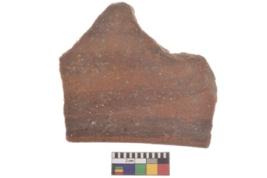 | Description / विवरण | Specimen of black on red ware with decorative geometric Its decorated with two horizontal bands with sets of triple arches painting. |