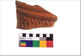 | Description / विवरण | Specimen of potsherd with black decorative geometric painting . |