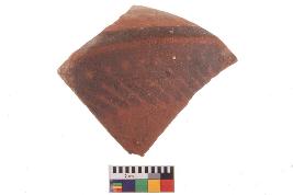 | Description / विवरण | Specimen of potsherd with black decorative geometric painting, Type Black on Red Ware . |