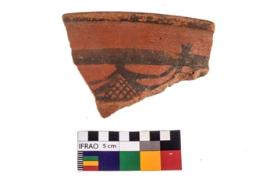 | Description / विवरण | Specimen of potsherd black on red painted pottery. It is fine fabric in sharp contrast with painted design are executed in black pigment. |