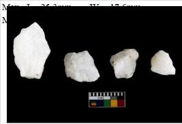 | Description / विवरण | Specimen of cores with weathered cortex and several broad fluted marks. Some of them are irregular in shape, whereas some are tapering at one end. |