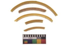 | Description / विवरण | Specimen n-5 having glossy yellow surface. They are circular in cross-section. A parallel groove passing through the middle portion of the bangle surface. |